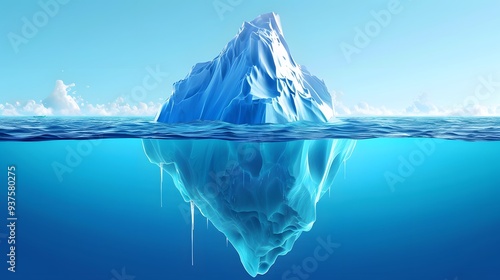 Obraz premium Illustration of a 3D iceberg half above and half below water in format AI generated illustration