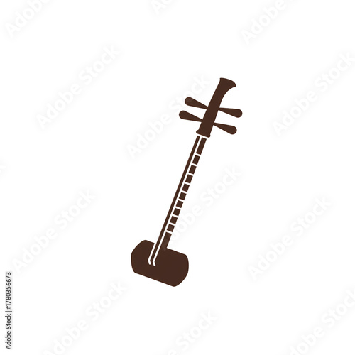 © BackgroundStudio, Naklejka premium Illustration of a Dan Bau, a Vietnamese single-stringed instrument on a black background