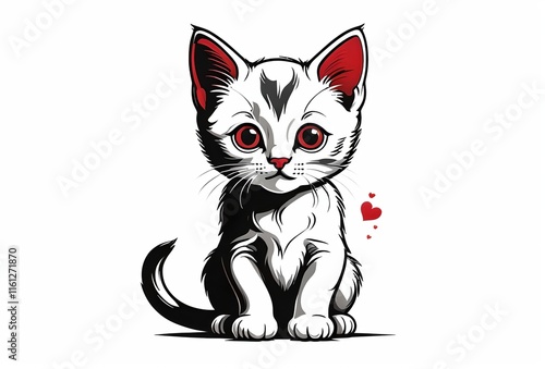 Obraz premium illustration of a drawn cute kitten, isolated on white background