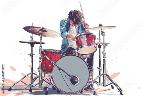 © GHArtwork, Fototapeta premium illustration of a drummer playing the drum set