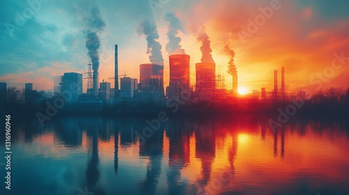 © Peter, Naklejka premium illustration of a factory, power plant that pollutes the environment