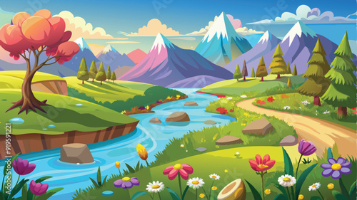 © fashanbd, Fototapeta premium Illustration of a flower meadow in spring. AI digital illustration
