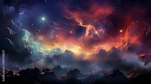 Fototapeta premium Illustration of a galaxy, adorned with stardust and bright shining stars.
