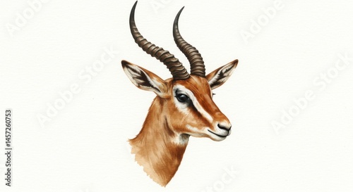 © all is well, Naklejka premium Illustration of a gazelle head with long horns on a white background detailed and realistic art