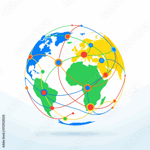 © MUZALIFAH, Naklejka premium Illustration of a globe with interconnected lines and nodes, representing global networks and connections.