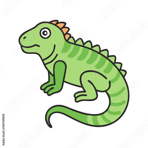 Fototapeta premium Illustration of a green iguana reptile lizard cartoon animal drawing vector image graphic design art