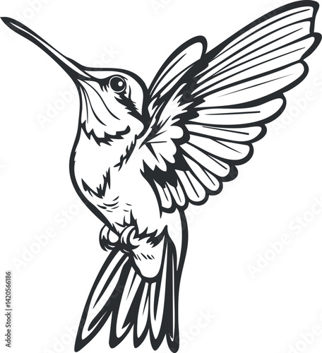 Fototapeta premium Illustration of a hummingbird in flight showcasing its detailed wings and body features.
