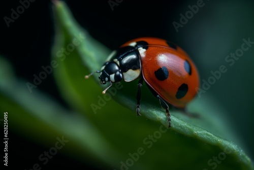 Fototapeta premium Illustration of a ladybug perched on a vibrant green leaf, created using generative AI