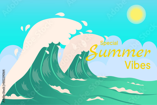 © TaniaYurinta, Naklejka premium illustration of a landscape with the sea