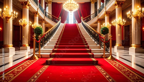 © wanna, Obraz premium Illustration of a luxurious red carpet entrance with stairs for a celebration.