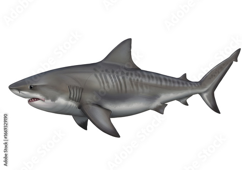 © isolatedpng, Obraz premium Illustration of a majestic underwater predator, with its streamlined body and powerful tail, showcasing its unique striped pattern and imposing presence.