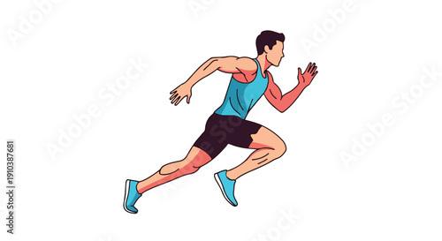 Fototapeta premium Illustration of a man running in athletic wear with a dynamic pose against a white background.