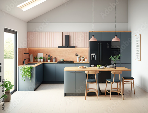 Fototapeta premium Illustration of a modern bright kitchen, created with Generative AI technology