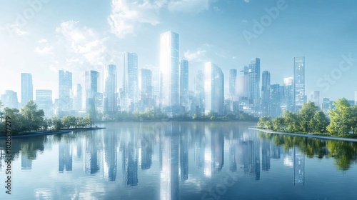 © WrongWay, Naklejka premium Illustration of a modern futuristic smart city concept