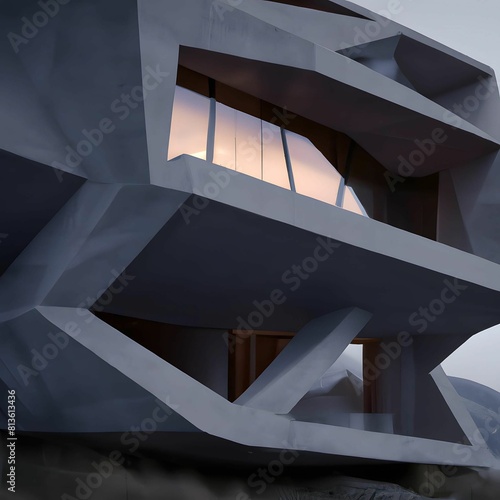 © Wirestock, Fototapeta premium Illustration of a modern house at sunset
