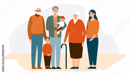 © Tanicsean, Naklejka premium Illustration of a multi-generational family standing together, depicted in a flat, modern style