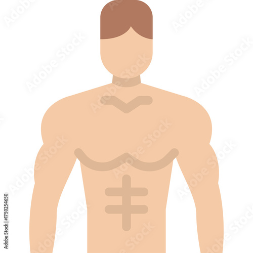 Fototapeta premium Illustration of a Muscular Male Torso with Defined Abdominals and Pecs in Flat Design Style on Transparent Background