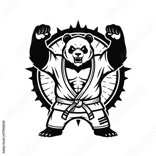 © Ike, Fototapeta premium Illustration of a muscular panda bear wearing a martial arts uniform.