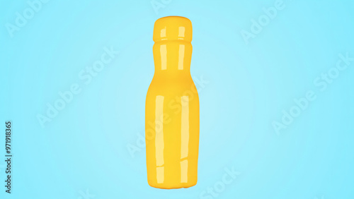 © SohubProduction, Fototapeta premium illustration of a orange juice bottle isolate on blue background. 3D Render.