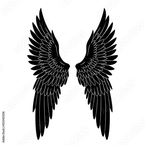 Naklejka premium Illustration of a pair of symmetrical black wings silhouette