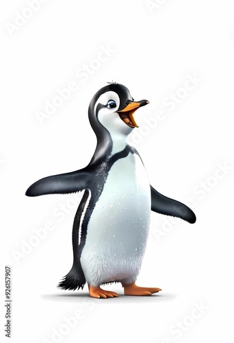© 4AMKINGS, Obraz premium Illustration of a penguin dancing isolated on a white background. Generate AI
