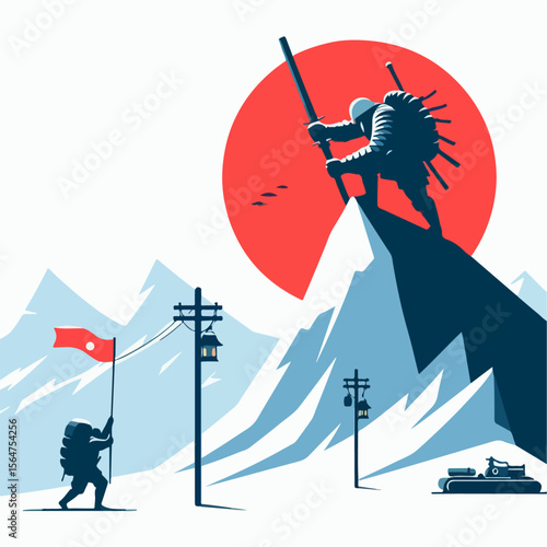 Naklejka premium illustration of a person climbing a mountaiun