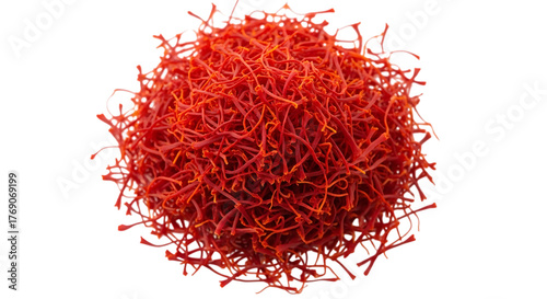 © MdRaich, Naklejka premium Illustration of a pile of dried red saffron threads isolated on transparent background