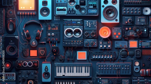 © basketman23, Obraz premium Illustration of a podcast network logo featuring a variety of genres