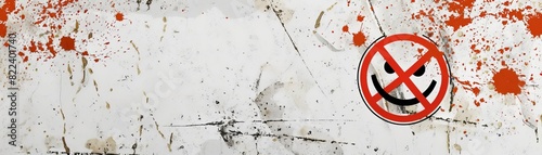 © Chano_1_na, Fototapeta premium Illustration of a prohibition sign with the text No Smiling in bold letters on a white backdrop