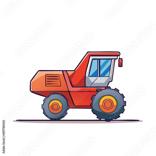 Naklejka premium Illustration of a Red and Orange Tractor with Blue Windows and Gray Tires in Flat Design
