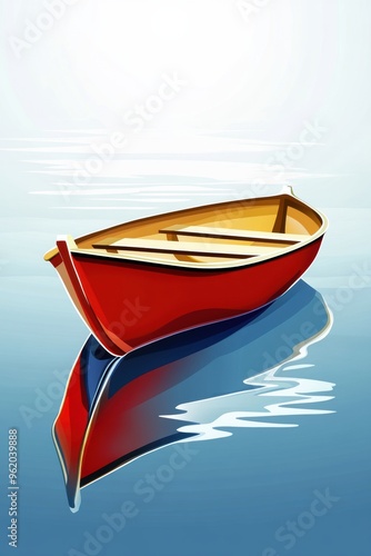 © OVAVO, Fototapeta premium Illustration of a Red Boat on Calm Water