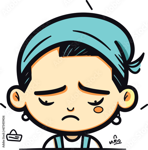 © Ehtisham, Fototapeta premium Illustration of a sad boy wearing a turban. vector illustration