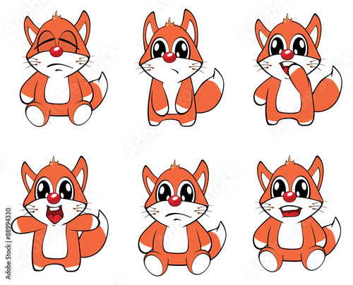 © liusa, Fototapeta premium illustration of a set funny foxes. Cartoon