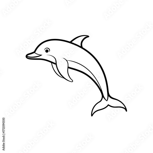 Fototapeta premium Illustration of a single outlined dolphin on transparent background