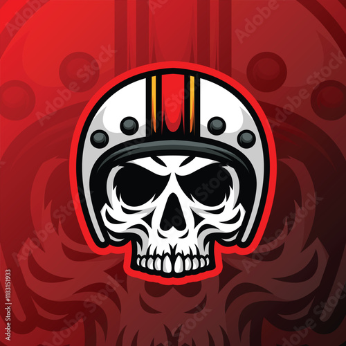 © YusufMC, Fototapeta premium illustration of a skull head mascot wearing a helmet