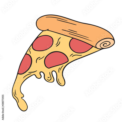 Obraz premium Illustration of a slice of pepperoni pizza on a thin crust with glass cheese on the edge
