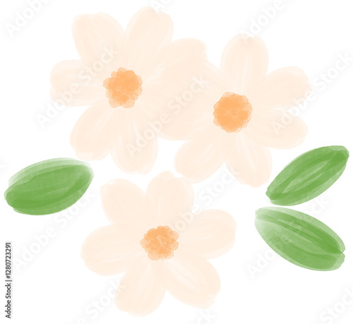 © May Chamai, Naklejka premium Illustration of a small white Daisy flower blooming