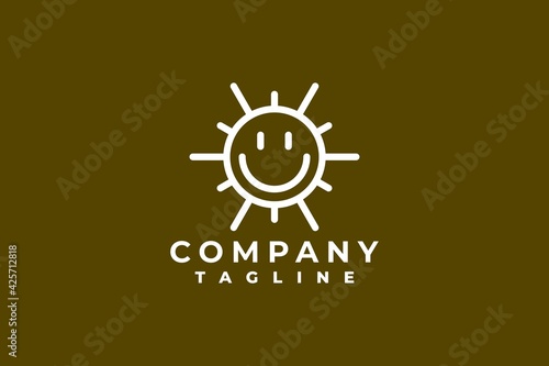 Fototapeta premium illustration of a smiley sun with a line art style. logo vector template.
