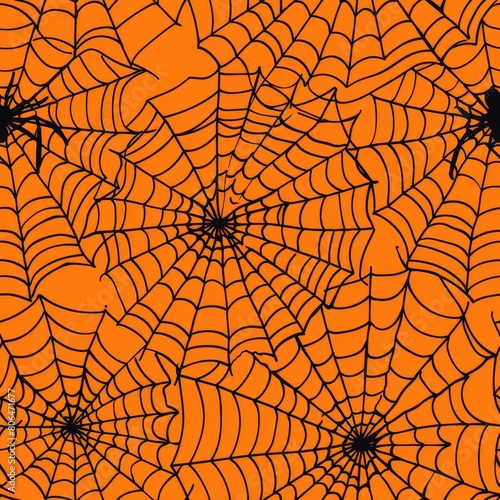© Uliana, Obraz premium Illustration of a spider and cobwebs for Halloween. on white background. Seamless pattern