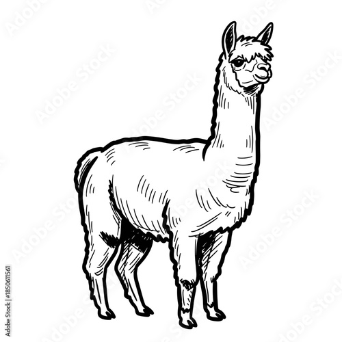 Fototapeta premium Illustration of a standing llama in a sketched style