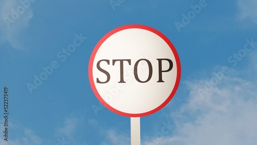 Obraz premium Illustration of a "stop" traffic sign and sky background.