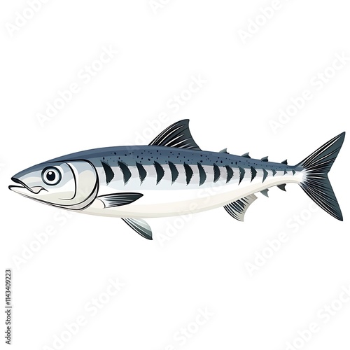 © NatthaphonSiri, Obraz premium Illustration of a Striped Mackerel Fish Isolated on White Background.