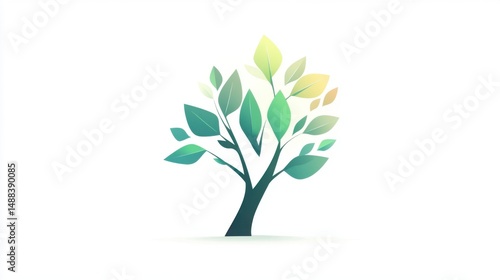 Obraz premium Illustration of a Stylized Tree with Green and Yellow Leaves