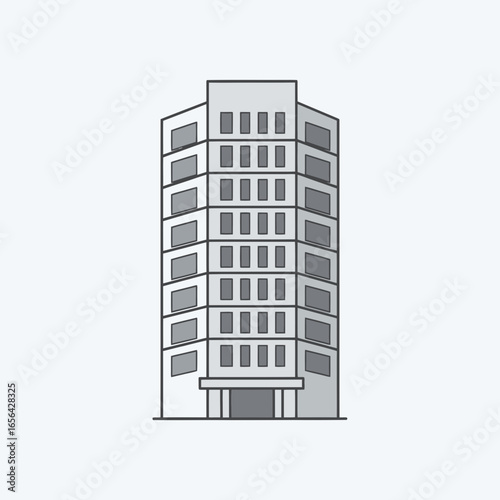 © Ali, Obraz premium Illustration of a tall building with many windows against a plain background.