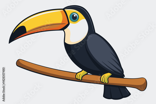 © Abu hamed shah, Naklejka premium illustration of a toucan perched on a wooden branch.