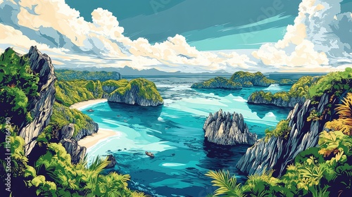 © Sinu, Obraz premium Illustration Of A Travel Poster For A Trip To Bali Island, Generative AI