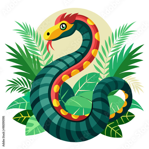 Fototapeta premium Illustration of a tropical snake in the wild, representing exotic wildlife and biodiversity.
