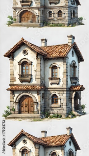 Obraz premium Illustration of a two-story stone house