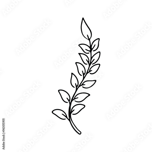 Fototapeta premium illustration of a vertical branch with multiple leaves.
