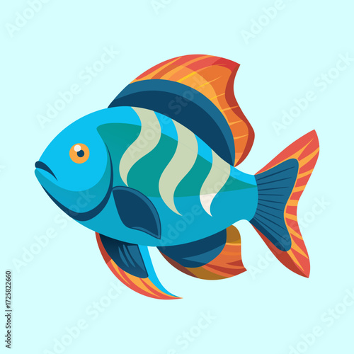 © SharikaShammi, Naklejka premium Illustration of a vibrant and colorful cartoon fish with detailed fins